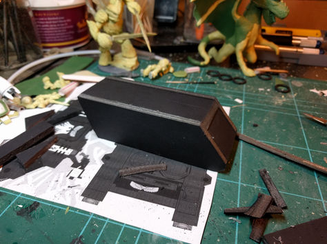 This Deathwatch Rhino is an APC (armored personal carrier) in my Deathwatch army for Warhammer 40,000. It was created in 8 days using foam core as the base shape and adding a plasticard skin to make the detail work on. The detail work of the model was created using a mixture of; plasitcard, milliput, green stuff, Lego and miscellaneous bits and bobs.